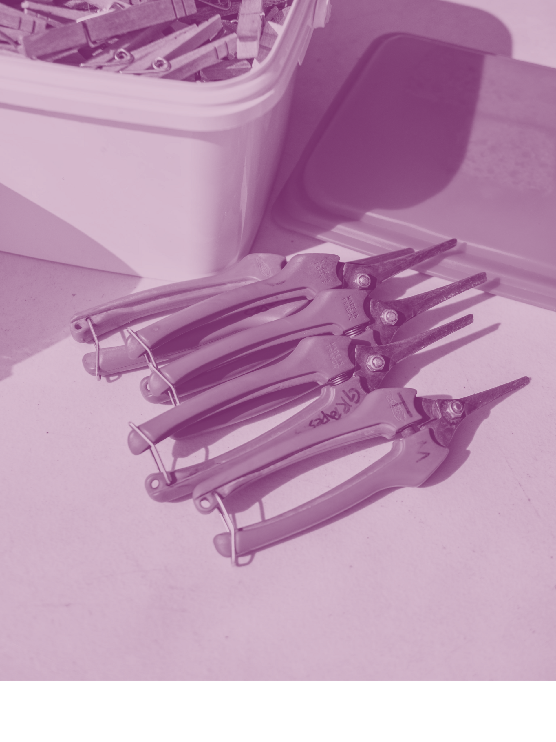 Pulling suckers, training shoots, tying down nets for protection
